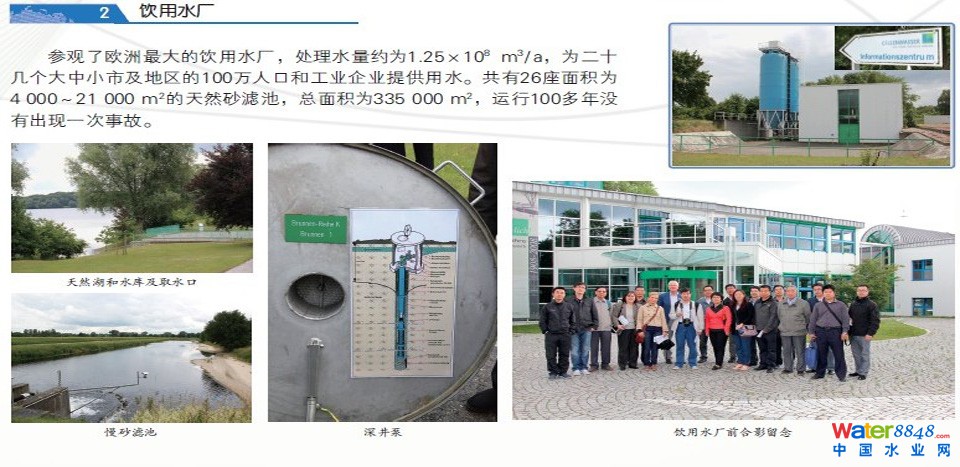 擬定于 2015年11月 成行。 由 中國(guó)給水排水雜志社 和 德國(guó)埃姆歇水協(xié)聯(lián)合組織的第三期中德技術(shù)培訓(xùn)正在報(bào)名,歡迎群友和感興趣的技術(shù)人員參加。培訓(xùn)地點(diǎn):北威州(埃森、多特蒙德、蓋爾森基興、哈爾滕、杜塞爾多夫),克隆、法蘭克福、柏林。培訓(xùn)內(nèi)容:污泥處理與處置、雨水收集利用、給水處理、工業(yè)廢水處理、廢物資源化利用、污水廠運(yùn)行與管理等。有意者可與中國(guó)給水排水雜志社 聯(lián)系。