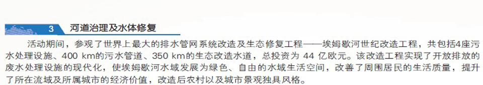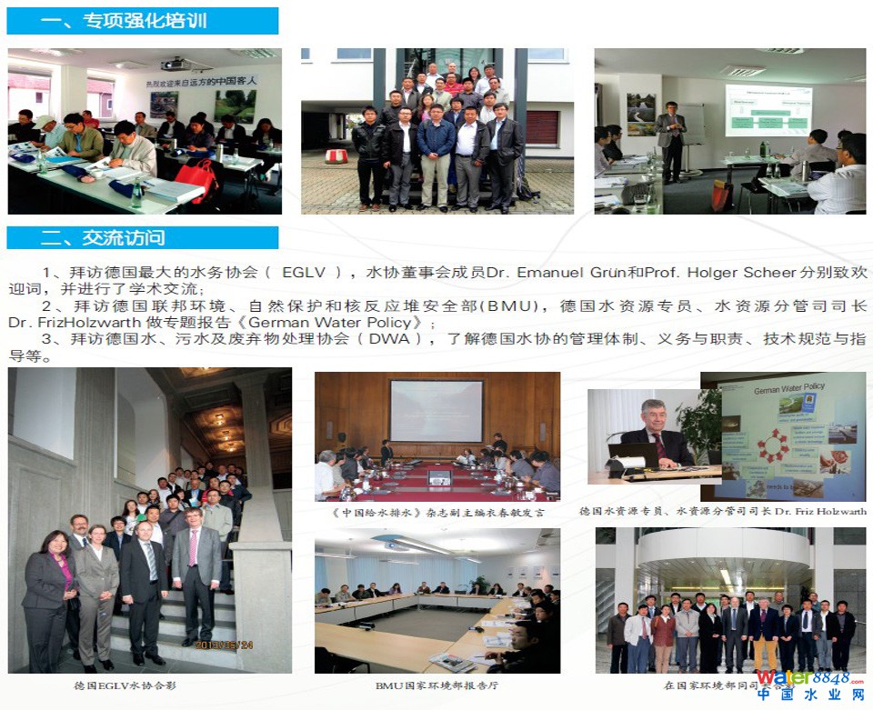 為進(jìn)一步推動(dòng)中德在高新技術(shù)的引進(jìn)以及運(yùn)行管理經(jīng)驗(yàn)的交流分享等層面的合作,通過(guò)考察德國(guó)的城市污水處理運(yùn)行管理模式,進(jìn)一步優(yōu)化國(guó)內(nèi)已有的污水處理技術(shù),降低城市污水處理設(shè)施的運(yùn)行費(fèi)用,能夠?yàn)槲覈?guó)城市污水處理的持續(xù)運(yùn)行提供有價(jià)值的管理經(jīng)驗(yàn)。為此,中國(guó)給水排水雜志社與全球久負(fù)盛名、德國(guó)最大的并已有100多年歷史的EMSCHER(埃姆歇)水協(xié)下屬埃姆歇水技術(shù)集團(tuán)公司建立了長(zhǎng)期的培訓(xùn)合作關(guān)系,并將于2015年8月組織 赴德考察培訓(xùn)。
