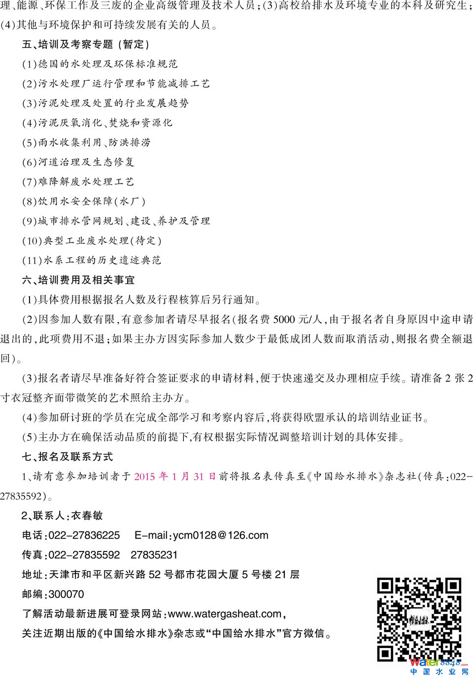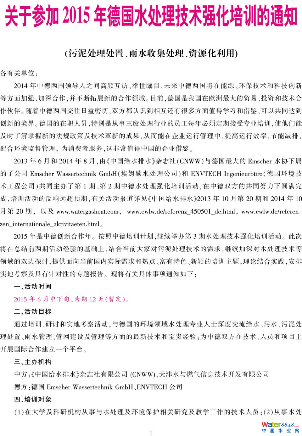 關(guān)于參加2015年德國(guó)水處理技術(shù)強(qiáng)化培訓(xùn)及考察的通知