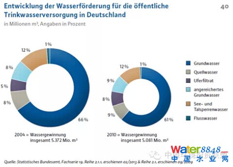 (德國(guó)公共飲用水水源發(fā)展變化,依次為地下水、泉水、隔岸過(guò)濾、富集的地下水、湖泊和水庫(kù)、河水)