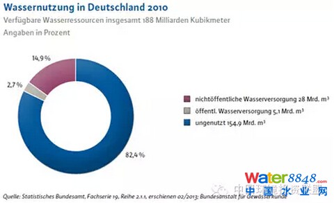 (2010年德國(guó)水利用——公共水供應(yīng):5.1 Mrd˙m3,非公共水供應(yīng):28 Mrd˙m3未以利用:154.9 Mrd˙m3)