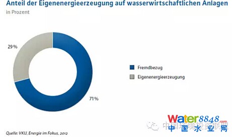 (2012年德國(guó)水業(yè)設(shè)施中本身能源生產(chǎn)所點(diǎn)比重:灰色為自產(chǎn),藍(lán)色為外源)