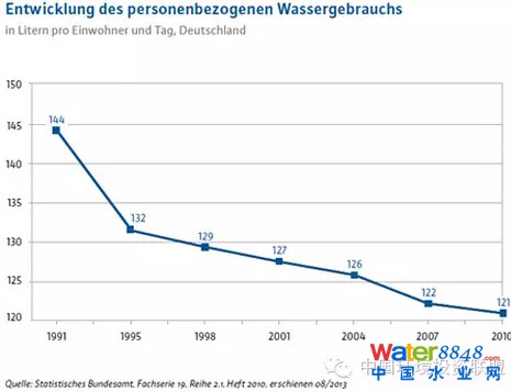(德國(guó)人均用水量發(fā)展:?jiǎn)挝粸樯?每人每天)