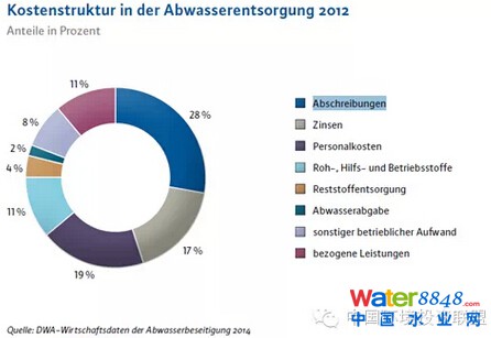 (2012年廢水處理成本結(jié)構(gòu),依次為:折舊、利息、人員、原料、剩余材料處理、廢水費(fèi)、其它經(jīng)營(yíng)費(fèi)用、相關(guān)服務(wù))