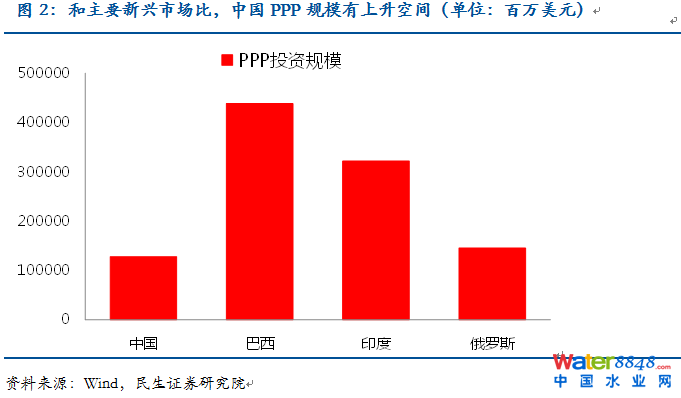 一、PPP模式在未來地方債扮演何種角色? 43號文提供了新一屆政府對地方債務治理的框架,其中明確將逐步剝離地方融資平臺公司的政府融資職能,推廣使用政府與社會資本合作模式。10月28日,財政部印發(fā)《地方政府存量債務納入預算管理清理甄別辦法》,最大亮點就是要大力推廣PPP模式,通過PPP模式將政府債務轉為企業(yè)債務。在融資政策的基礎上,財政部擬采取公司制PE形式設立中央財政PPP融資支持資金,為PPP項目開發(fā)、準備階段和融資過程提供資金支持。 根據(jù)國務院研究發(fā)展中心的測算,到2020年,與城鎮(zhèn)化相關的融資需求約為42萬億元。根據(jù)43號文和《地方政府存量債務納入預算管理清理甄別辦法》的規(guī)定推演,未來地方政府性債務主要由一般政府債、專項政府債和PPP債構成?梢,應對未來幾十年城鎮(zhèn)化的資金缺口,PPP模式被委以了重任。 從43號文規(guī)定來看,對于新增政府債務,推廣使用政府與社會資本合作模式。鼓勵社會資本通過特許經營等方式,參與城市基礎設施等有一定收益的公益性事業(yè)投資和運營。對于存量政府債務,在建工程確實沒有其他建設資金來源的,應主要通過政府與社會資本合作模式和地方政府債券解決后續(xù)融資。 PPP模式具有較大的發(fā)展?jié)摿。一方面?013年中國PPP項目的累計總投資為1278億美元,和同類型新興市場比有較大的差距。另一方面,2013年新增的PPP投資額僅為7億美元,而2013年城投債的發(fā)行量則高達9512億元,若PPP模式成功替代城投主導的融資模式,其發(fā)展空間巨大。 資料圖