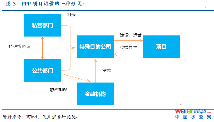 PPP模式(Public-Private-Partnership,即“公共部門-私人企業(yè)-合作”的模式)指的是公共部門通過與私人部門建立伙伴關系,共同提供公共產品或服務,是20世紀90年代后出現(xiàn)的一種新的融資模式。 PPP模式的一個典型結構是公共部門與中標單位組成的特殊目的公司簽訂特許合同,由特殊目的公司負責融資、建設及經營。這種融資形式的實質是政府通過給予私營公司長期的特許經營權和收益權來換取基礎設施建設,以解決政府的財政困境。 資料圖 三、PPP模式與BOT模式的區(qū)別?