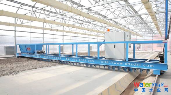 該工程由中大貝萊特壓濾機有限公司自主設計,使用擁有自主知識產(chǎn)權的高效自動隔膜壓濾機,使污泥的含水率降至60%以下,再經(jīng)泥餅破碎機破碎后送至溫室棚,溫室棚采用太陽能—水(地)源熱泵復合節(jié)能新技術設計制造,并配置了自動污泥干化布料機和除臭設備,使污泥變?yōu)楹什怀^10%的無污染的干粉,達到了進一步綜合利用的目的。