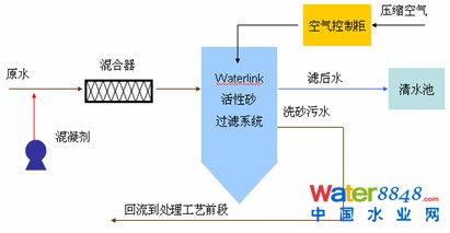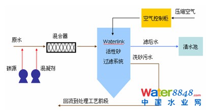 WATERLINK活性砂過(guò)濾器是一種集絮凝、澄清、過(guò)濾和生物處理功能為一體的連續(xù)式運(yùn)行處理設(shè)備,廣泛應(yīng)用于飲用水、工業(yè)用水、污水深度處理及中水回用處理領(lǐng)域;钚陨斑^(guò)濾器(又稱連續(xù)流砂過(guò)濾器)采用升流式流動(dòng)床過(guò)濾原理和單一均質(zhì)濾料,過(guò)濾與洗砂同時(shí)進(jìn)行,能夠24小時(shí)連續(xù)自動(dòng)運(yùn)行,無(wú)需停機(jī)反沖洗,巧妙的提砂和洗砂結(jié)構(gòu)代替了傳統(tǒng)大功率反沖洗系統(tǒng),能耗極低,無(wú)需維護(hù),管理簡(jiǎn)便,可無(wú)人值守。