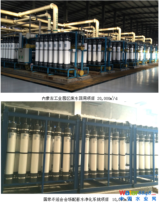 中環(huán)膜推出的TIPS(熱致相分離)法外壓超濾膜,由于其結(jié)晶度高及膜主體結(jié)構(gòu)為均勻海綿狀結(jié)構(gòu),在提升膜通量、耐化學(xué)性能、耐溫和強(qiáng)度方面有很大的優(yōu)勢(shì)。同時(shí),公司采用專有永久親水性改性技術(shù),增加了超濾膜抗污染特性,大大拓展了其使用范圍。近年來,中環(huán)膜實(shí)施了多個(gè)TIPS法外壓超濾膜整體解決方案:北京市政領(lǐng)域40000 m3/d再生水項(xiàng)目、國家冬運(yùn)會(huì)供水項(xiàng)目、中石化油田廢水回用項(xiàng)目、兗礦集團(tuán)煤化工廢水回用項(xiàng)目、內(nèi)蒙古工業(yè)園區(qū)廢水回用項(xiàng)目等,受到業(yè)界人士及眾多客戶的廣泛好評(píng)。