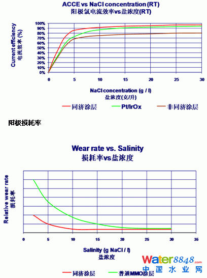 10. 采用同濟大學與中科院聯(lián)合研制的最新專利復極式電極,析氯電位低,電極壽命長,連續(xù)電解壽命五年以上。