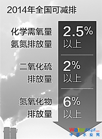 2014年,環(huán)保部著力推進(jìn)減排工程建設(shè)。截至2014年11月底,全國新增城鎮(zhèn)污水日處理能力900萬噸,1.9億千瓦燃煤機(jī)組實(shí)施脫硝和除塵改造,9576萬千瓦燃煤機(jī)組脫硫設(shè)施實(shí)施增容改造。《政府工作報告》中的環(huán)保量化指標(biāo)全部完成。2014年,全國化學(xué)需氧量、氨氮排放量預(yù)計(jì)可減排2.5%以上,二氧化硫排放量預(yù)計(jì)可減排2%以上,氮氧化物預(yù)計(jì)可減排6%以上。