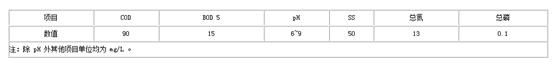 該廢水處理設(shè)施經(jīng)調(diào)試后穩(wěn)定運(yùn)行一段時(shí)間,系統(tǒng)運(yùn)轉(zhuǎn)情況良好,設(shè)備運(yùn)轉(zhuǎn)正常。經(jīng)該系統(tǒng)處理后,廢水COD由500 mg/L降至90 mg/L以下,BOD5由300 mg/L降至20 mg/L以下,整體生化處理效率均達(dá)到82%以上,出水pH保持在7~8。表 2為該污水處理廠穩(wěn)定運(yùn)行30 d時(shí)的出水水質(zhì)。