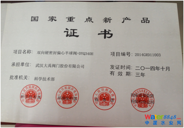 大禹研發(fā)的雙向硬密封偏心半球閥系列產(chǎn)品,通過了專家評(píng)審、各區(qū)級(jí)市級(jí)省級(jí)層層評(píng)選推薦,最終通過了國家科學(xué)技術(shù)部的鑒定和認(rèn)可,并頒發(fā)了“國家重點(diǎn)新產(chǎn)品”榮譽(yù)證書,大禹的研發(fā)團(tuán)隊(duì)必將再接再厲,再創(chuàng)輝煌!