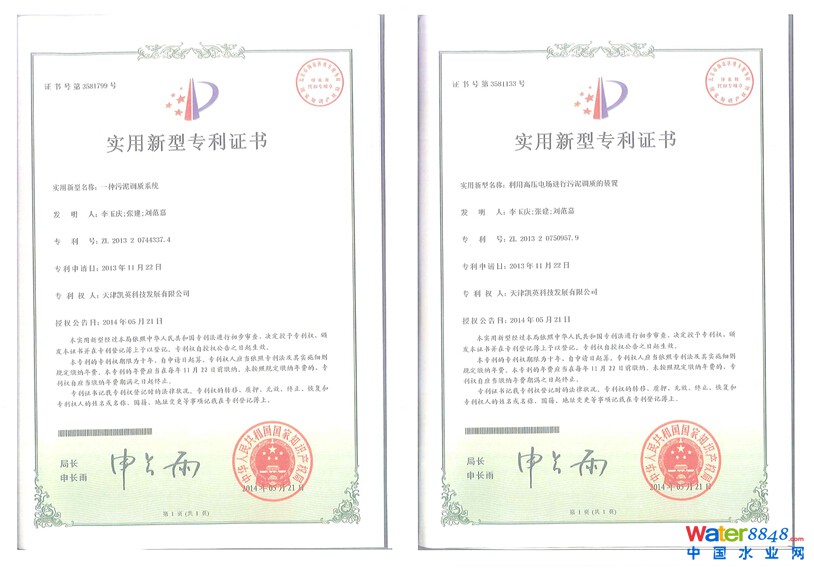 1實(shí)用新型一種污泥調(diào)質(zhì)系統(tǒng)CN201320744337.4授權(quán)