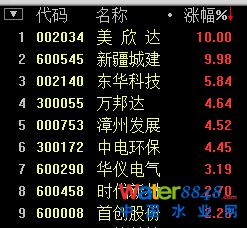 網(wǎng)易財經(jīng)3月30日訊 周一上午,污水處理板塊相關(guān)個股表現(xiàn)出色,截至發(fā)稿時,板塊平均上漲1.68%。個股方面,美欣達、新疆城建漲停,東華科技上漲5.84%。