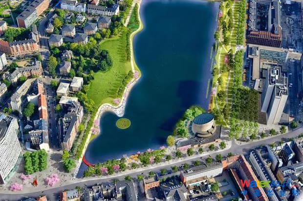 一張重新設(shè)計(jì)了湖濱后的效果圖,哥本哈根流中的水最終流入這樣的一個(gè)蓄水終端。