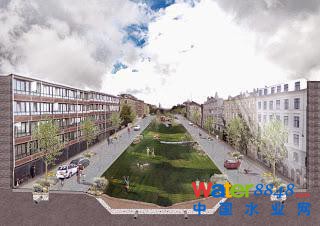 利用街道綠化作為暴雨緩沖區(qū)的案例迄今為止,已有很多應(yīng)對(duì)方案擺在臺(tái)面上討論。上圖即為典型的構(gòu)建“暴雨應(yīng)對(duì)街道”的案例。簡(jiǎn)單說(shuō)來(lái),就是將街道的綠化空間(綠空間)作為暴雨時(shí)的蓄水緩沖(藍(lán)空間),也有的街道將綠帶布置在路一側(cè)而非路中間較低的地勢(shì)處,起的效果是一樣的。如此做法效果奇佳,在應(yīng)對(duì)暴雨的做法同時(shí)也擴(kuò)大了城市綠化覆蓋率,避免了對(duì)取消停車(chē)位后的投訴及諸如此類(lèi)的問(wèn)題。對(duì)街道的綠化及對(duì)雨水溢流的保留,是構(gòu)建良好的城市景觀的有效途徑之一。解決地面徑流過(guò)大的問(wèn)題,同時(shí)又可創(chuàng)造更多的城市綠地,這種構(gòu)想相當(dāng)高明。然而在哥本哈根,不是所有街道都有空間來(lái)容納綠色走廊或儲(chǔ)水空間。這些街道該何去何從?回到本文標(biāo)題,在丹麥,城市空間正被新的氣候情況深刻地影響著,反過(guò)來(lái),為了解決氣候問(wèn)題,城市空間也可以發(fā)揮重要的作用——這也是為何哥本哈根"current"系統(tǒng)正被開(kāi)發(fā)的原因。