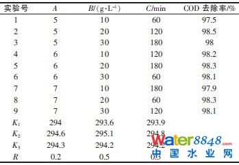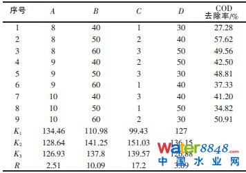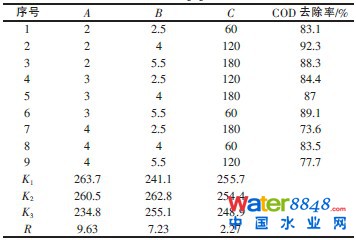 表4 鐵炭微電解/H2O2正交試驗(yàn)結(jié)果