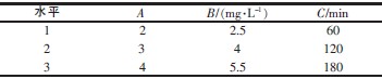 (3)鐵炭微電解/H2O2正交試驗(yàn):根據(jù)上述單因素試驗(yàn)得到的最佳條件進(jìn)行正交試驗(yàn),進(jìn)一步確定最佳pH、H2O2用量以及反應(yīng)時(shí)間。