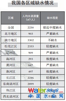 我國(guó)是一個(gè)干旱缺水嚴(yán)重的國(guó)家。由于可利用的淡水資源有限,加上水資源浪費(fèi)、污染以及氣候變暖、降水減少等原因,加劇了水資源短缺的危機(jī)。按照國(guó)際標(biāo)準(zhǔn),人均水資源低于3000立方米為輕度缺水,低于2000立方米為中度缺水,低于1000立方米為重度缺水,低于500立方米為極度缺水。照此,目前我國(guó)有16個(gè)省區(qū)重度缺水,6個(gè)省區(qū)極度缺水;全國(guó)600多個(gè)城市中有400多個(gè)屬于“嚴(yán)重缺水”和“缺水”城市。京津冀人均水資源僅286立方米,為全國(guó)人均的1/8,世界人均的1/32,遠(yuǎn)低于國(guó)際公認(rèn)的人均500立方米的“極度缺水”標(biāo)準(zhǔn)。