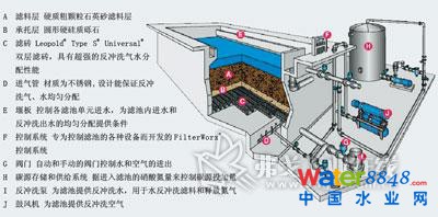 圖3 采用氣水聯(lián)合反沖洗清洗濾料,反沖洗水總量低至處理量的2%