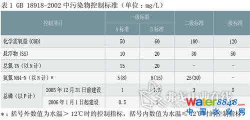 《GB 18918-2002l 城鎮(zhèn)污水處理廠污染物排放標準》對氮磷最高允許排放濃度(日均值)均有所規(guī)定,如表1所示。相比國家標準而言,北京、天津等地方標準要求更高。江蘇省將太湖地區(qū)城鎮(zhèn)污水廠主要水污染物排放標準升至一級A標準。“十二五”期間,污水處理的提標改造將成為重中之重,對氮磷的控制將會全面展開,污染控制指標體系不僅單獨設(shè)立富營養(yǎng)化水質(zhì)考核指標,并設(shè)置總量控制指標。