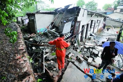 5月11日上午,長(zhǎng)沙市南郊公園北側(cè)的楠竹村,被倒塌圍墻壓壞的房屋破損嚴(yán)重。 記者 田超 攝