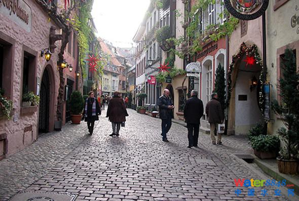 說佛萊堡是一座古城是一點都不會錯,來到這里第一感覺就是古色古香。街道是用鵝卵石鋪成的,在弗萊堡你看不到高樓大廈、看不到立交橋、地鐵等大城市該有的設施。這里只有有軌電車在大街上慢慢的行駛,沒有人在這里急匆匆的行走,這個小城好像不是處于現(xiàn)在的一個全球科技的時代。弗萊堡最讓人驚喜的是這里的街巷的水渠,水渠遍布城中的大街小巷。流的可是從黑森林里流出來的清澈泉水。德哈以薩姆河流過弗萊堡的郊外,到這里來漫步看看河岸的風景,也是很不錯的,這里的水果種植茂盛,桃樹、李子樹等遍地都是。這里的草地更是綠油油的一大片,很多游客喜歡在這里曬曬太陽,因為這里就是陽光明媚的溫暖小城。