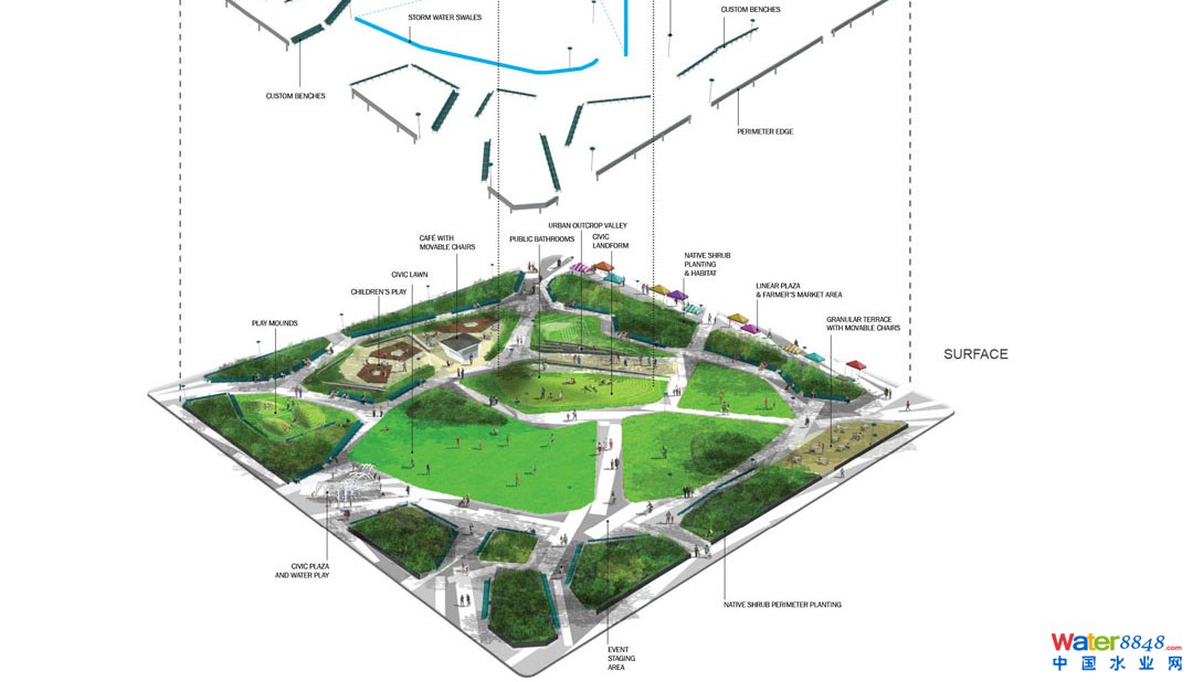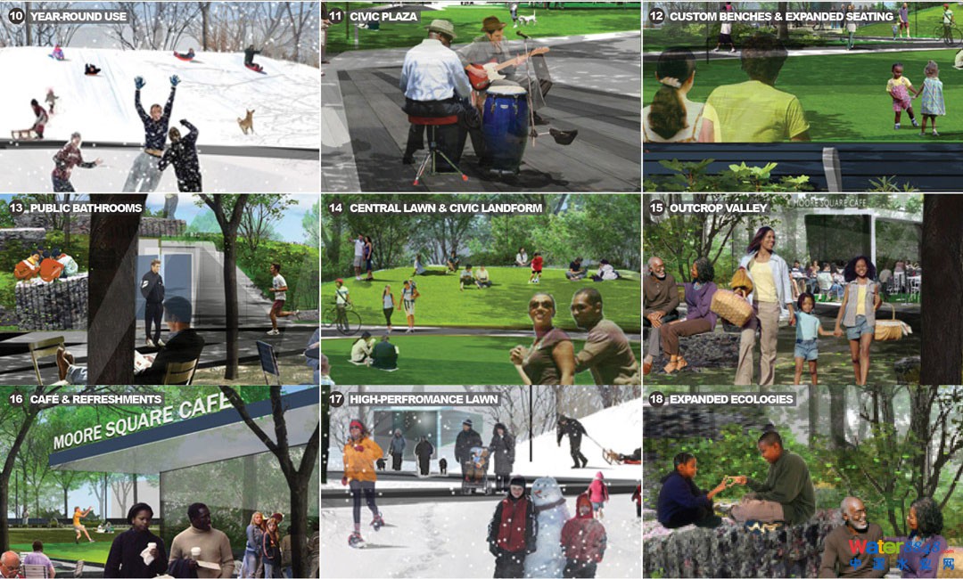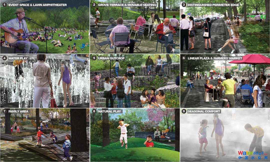 能拓展到最大化,在這塊4英畝的廣場上,人們將有更多的娛樂選擇和體驗(yàn),這樣的戶外環(huán)境將占地面積和多功能