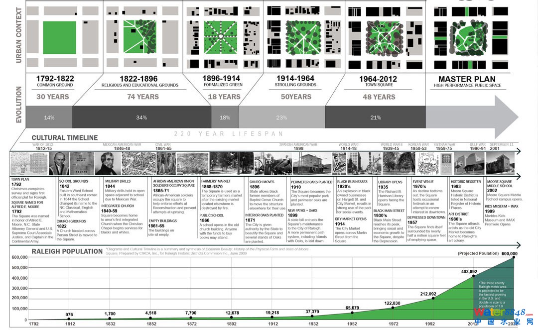 北卡羅萊納州立歷史保護(hù)辦公室,30多個城市和州機(jī)構(gòu)合作和設(shè)計團(tuán)隊展開了廣泛的談話。對廣場大量的分析和規(guī)