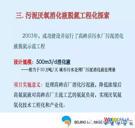 在“國(guó)家污泥處理處置產(chǎn)業(yè)技術(shù)創(chuàng)新戰(zhàn)略聯(lián)盟”工作會(huì)議上,北京排水集團(tuán)甘一萍演講《污泥厭氧消化液低能耗脫氮技術(shù)的挑戰(zhàn)與應(yīng)用展望》,內(nèi)容如下: