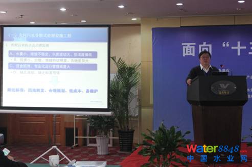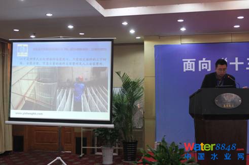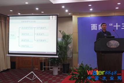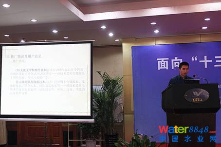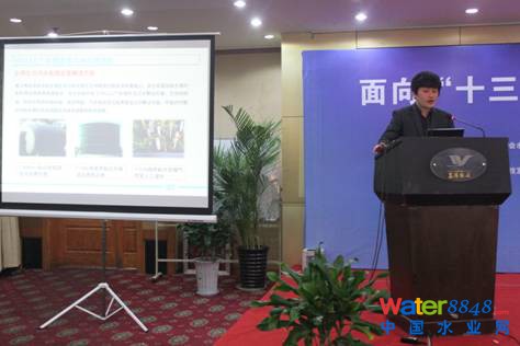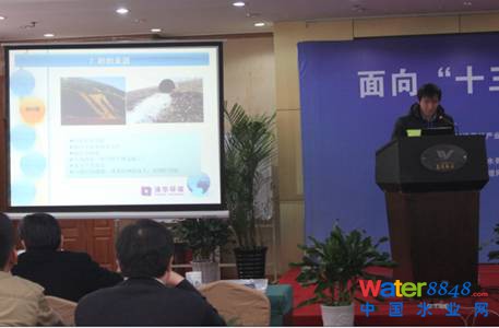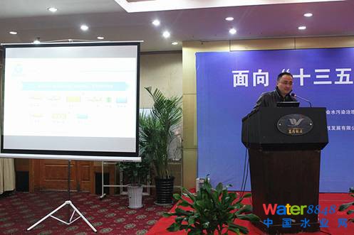 江蘇天雨環(huán)保集團有限公司副總經(jīng)理曹貴華向與會代表詳細介紹了公司的分段進水深度脫氮除磷工藝和太陽能、高溫多熱源熱泵污泥干化系統(tǒng)。