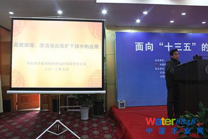 丹東市水技術(shù)機電研究所有限責任公司孫立濱總工與參會代表交流該公司的高效濃縮、澄清技術(shù)與裝備,該技術(shù)與裝備,主要運用重力沉淀、斜板沉淀和化學混凝加速沉淀的原理,分離各類含固料漿或污水的懸浮固體顆粒,實現(xiàn)含固料漿液的深度濃縮沉淀和澄清凈化。