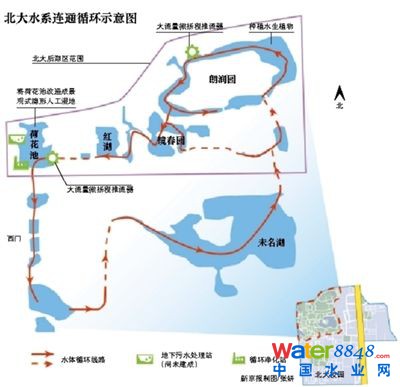 總體規(guī)劃方案的設(shè)計方北京市水科學(xué)技術(shù)研究院副總工程師黃炳彬稱:“此次工程主要是進行北大的水系連通、循環(huán)及水質(zhì)保障。以再生水為主要水源,用人工濕地對再生水進行進一步深度凈化,然后溝通水系,實現(xiàn)各湖區(qū)互聯(lián)互通。利用污水收集、處理及回用,充分提升水資源利用效率、節(jié)約清水;建設(shè)透水鋪裝、雨水管線、雨水收集蓄水池,利用雨水資源,構(gòu)建綠色海綿校園,使水資源循環(huán)利用、水系連通流動、水質(zhì)生態(tài)凈化有機結(jié)合,促進校園水系微循環(huán),恢復(fù)歷史名校風(fēng)貌。”