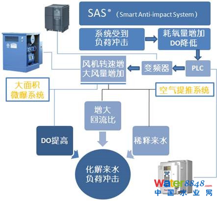 BioDopp工藝結(jié)合了氧化溝的混合液內(nèi)回流及一體化結(jié)構(gòu)的設(shè)計(jì)理念,利用A2/O不同功能分區(qū)的形式,借助CASS工藝前置選擇區(qū)的模式,輔以高效的曝氣技術(shù),通過創(chuàng)新的空氣提推技術(shù)作為源動(dòng)力,將不同功能單元結(jié)合在一起的生化處理工藝。該工藝具備占地少、能耗低、投資少及運(yùn)營(yíng)管理簡(jiǎn)便等優(yōu)點(diǎn),針對(duì)高濃難降解工業(yè)廢水有較大的優(yōu)勢(shì)。