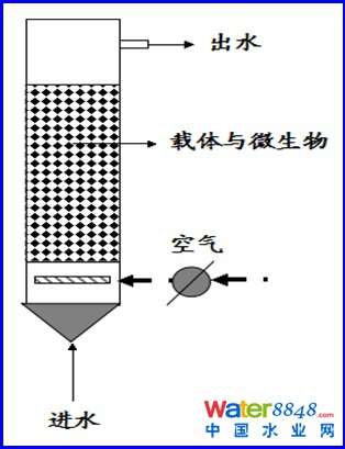 其應(yīng)用工藝為高效微生物——高效曝氣生物濾池(I—BAF/G—BAF)新工藝,這種工藝和傳統(tǒng)的曝氣生物濾池相比,I—BAF/G—BAF采用一類高效懸浮大孔載體,該載體比表面積大(80m2/g),孔隙率高(98%)。同時,通過分子設(shè)計,在載體引入大量的活性和強極性基團并通過固定化技術(shù),將大量變異菌和酶制劑牢牢固定在載體上,單位體積生物量大,最高可達60g/L。載體平均濕度為1.00g/cm3,在水中呈懸浮狀。由于采用固定化技術(shù),微生物不易脫落,這樣既提高了生物濃度,又避免了堵塞,可省去二沉池,大大簡化工藝流程,使操作管理更加簡便和科學(xué),易于控制。