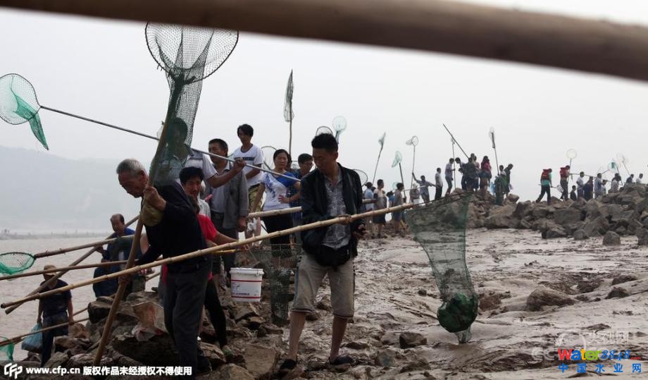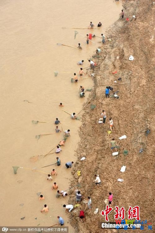 7月8日上午8時(shí),三門峽大壩開閘泄洪,黃河三門峽庫區(qū)水位急劇下降,開閘泄洪導(dǎo)致河水的含沙量劇增,含氧量下降,大量河魚被嗆暈浮出水面,吸引黃河兩岸眾多群眾加入規(guī)模宏大的撈魚大軍。