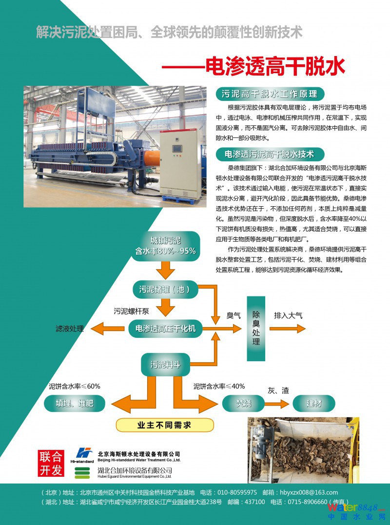 “該技術(shù)由桑德旗下湖北合加、海斯頓聯(lián)合開發(fā),將電滲透和板框壓濾相結(jié)合屬國內(nèi)首創(chuàng),污泥高干脫水技術(shù)整體水平達國際領(lǐng)先。”王凱軍說。