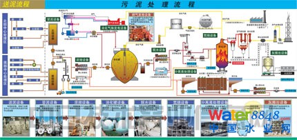1.來自污水處理中心的污泥首先經(jīng)過受泥槽沉淀,毛發(fā)等尺寸較大固態(tài)物體通過糞渣分離機(jī)抽出,然后被直接送往焚燒爐焚燒。