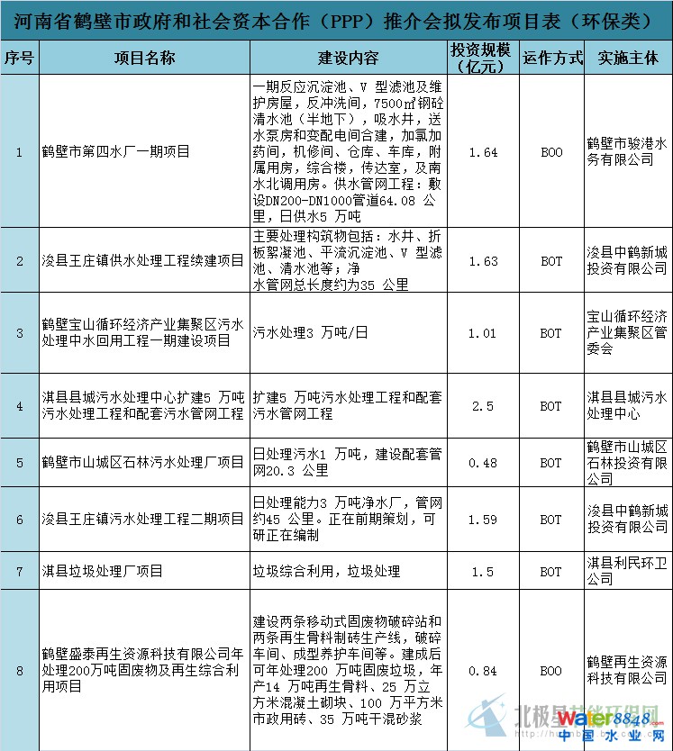 河南省鶴壁市發(fā)布首批42個(gè)PPP項(xiàng)目 共含8個(gè)環(huán)保項(xiàng)目