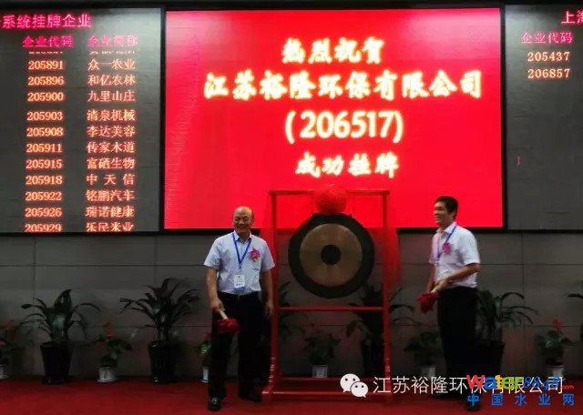7月27日,江蘇裕隆環(huán)保有限公司(企業(yè)代碼206517)在上海股權(quán)托管交易中心舉行掛牌儀式,標(biāo)志著裕隆環(huán)保正式步入多層次資本市場(chǎng)。