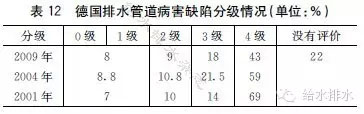 根據(jù)2009年檢測結(jié)果,評價有17%的管道設(shè)施處在0~2的級別中,也就是說這些管道設(shè)施需要在中、短期內(nèi)整治修復(fù)。2001年和2004年的檢測也是類似結(jié)論,詳見表12。