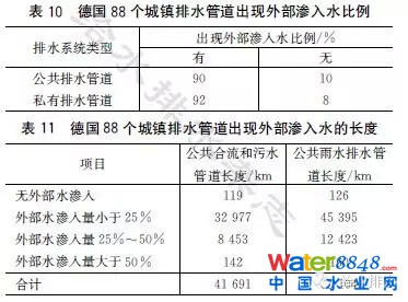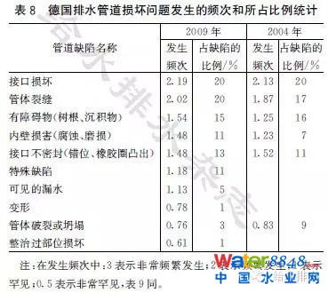 根據(jù)德國水協(xié)(DWA)的調(diào)研資料,詳細(xì)介紹了近年來德國排水管道的基本情況,包括排水管道長度、污水納管率、管齡狀況、管材狀況、排水管道檢測情況、管道缺陷狀況、檢查井缺陷狀況、外部滲入水量等,并對德國排水管道系統(tǒng)維修整治情況進(jìn)行了分析。