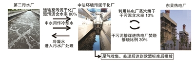 而污水處理廠產(chǎn)生的濕污泥用專用封閉車輛運到中法環(huán)境工廠內(nèi)污泥干化系統(tǒng)進料倉。其主要工藝路線是利用東吳熱電廠的蒸汽將含水率80%的濕污泥干化至含水率10%-30%的干污泥;干化后的污泥與煤摻和后送入東吳熱電廠鍋爐內(nèi)焚燒,回收污泥中所含熱能;同時園區(qū)第二污水處理廠的中水和尾水將分別用作干化設(shè)備冷卻水和廠區(qū)保潔、綠化用水,實現(xiàn)資源循環(huán)利用;污泥干化中產(chǎn)生的冷凝水直接排放到鄰近的第二污水處理廠處理。