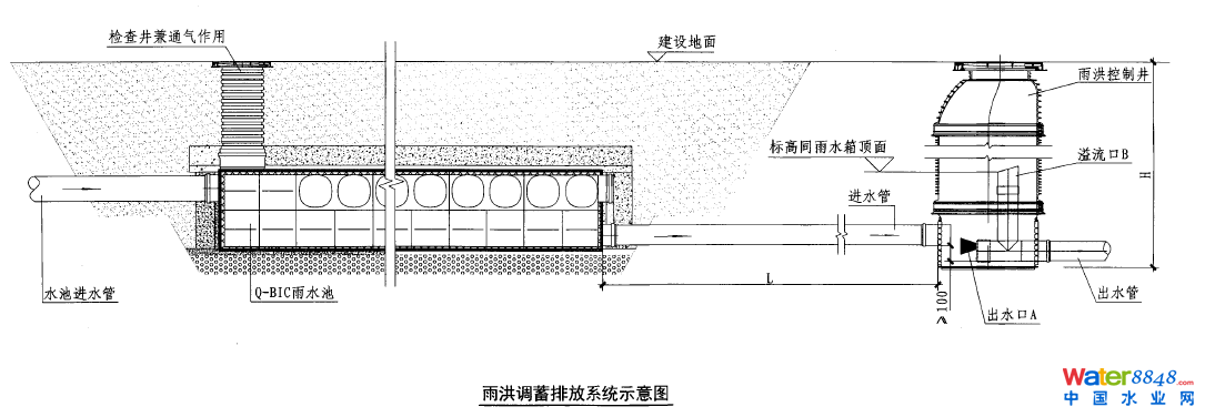 雨水調(diào)蓄水池由雨洪控制井進(jìn)行控制,可按照規(guī)范圖集10SS705雨水綜合利用第36頁進(jìn)行設(shè)計。