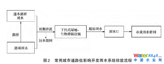 常用城市道路低影響開發(fā)雨水系統(tǒng)排放流程如圖 2 所示。