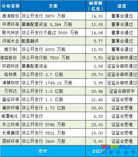 國禎環(huán)保2月公布非公開發(fā)行預(yù)案,擬非公開發(fā)行募集資金5億元,用于污水處理項(xiàng)目配套資金等,公司先后中標(biāo)合肥清溪凈水廠PPP招標(biāo)項(xiàng)目(總投資5.3億元)、懷遠(yuǎn)縣污水設(shè)施PPP項(xiàng)目(總投資1億元)和烏海市海勃灣區(qū)鳳凰河(北河槽)綜合治理工程PPP項(xiàng)目(總投資1.98億元);
