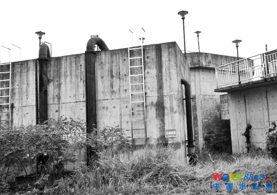 由于長期未用,污水處理廠的部分設施已經(jīng)損壞,污水池里也積滿了雨水。