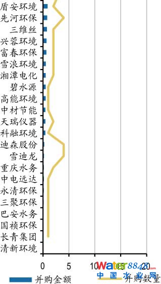 分公司來(lái)看,并購(gòu)金額前五名分別是凱迪電力、城投控股、首創(chuàng)股份、中原環(huán)保、瀚藍(lán)環(huán)境,其收購(gòu)金額占總金額的56%。