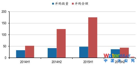 從2014年以來(lái)環(huán)保上市公司并購(gòu)總金額近400億元,15家公司與相關(guān)投資人成立并購(gòu)基金總規(guī)模263億元。并且從半年的統(tǒng)計(jì)來(lái)看,環(huán)保行業(yè)的并購(gòu)加速勢(shì)頭明顯。